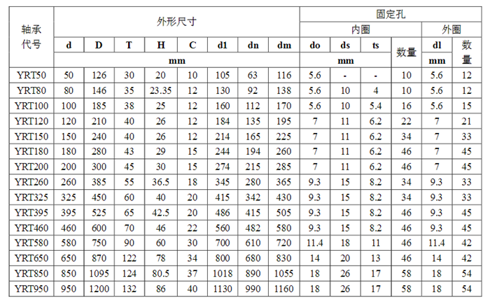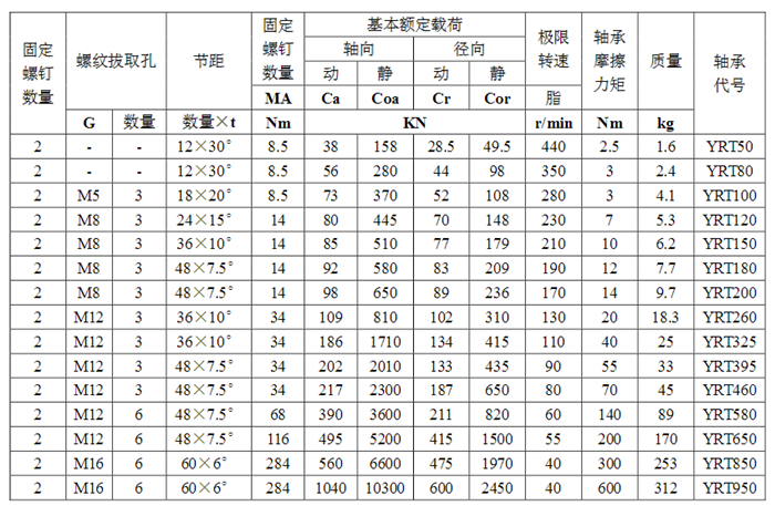 轉(zhuǎn)臺軸承具體參數(shù):